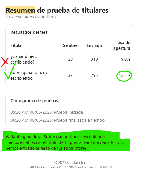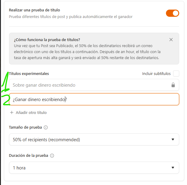 A partir de ahora, amigo de los artículos que se envían también por correo, la gente de Substack te va a dejar hacer "TESTS A/B de títulos" siempre que quieras.