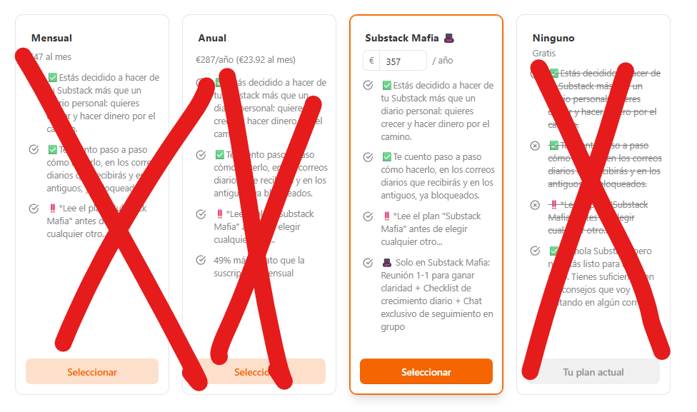 Como Substack no permite tener solamente una opción, tengo que mantener esos dos planes abiertos.