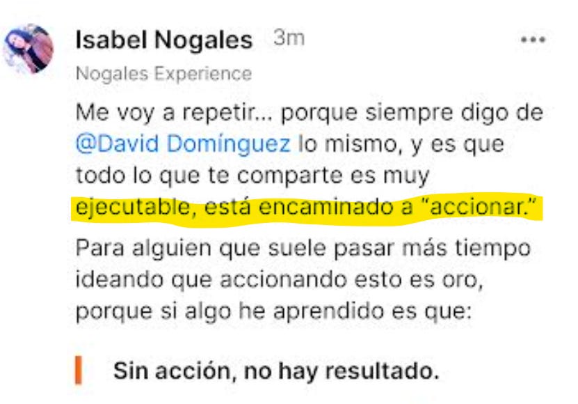 Luego, cuando nos veamos en la reunión 1-1, te explicaré cómo puedes sacarle el máximo partido al chat y conseguir colaboraciones, apoyo, oportunidades… interactuando en la comunidad.